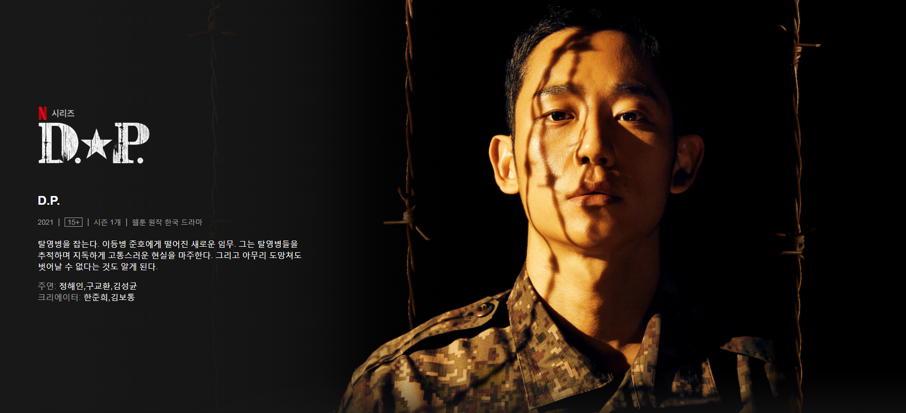 김보통 작가의 웹툰을 원작으로 제작된 D.P.는 대한민국 군대를 배경으로 탈영병들을 잡는 군무를 서는 준호와