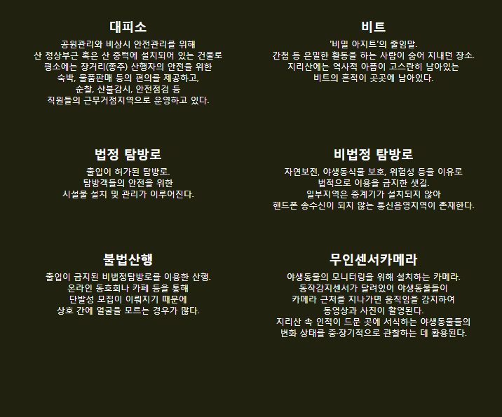 지리산 깊숙한 곳에서 벌어지고 있는 잔인한 사건에 휘말리며 진행됩니다.